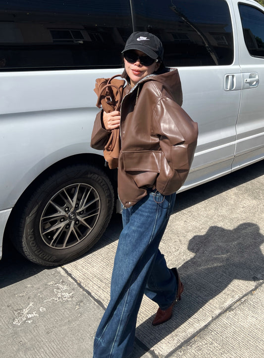B46 - Leather hoodie jacket