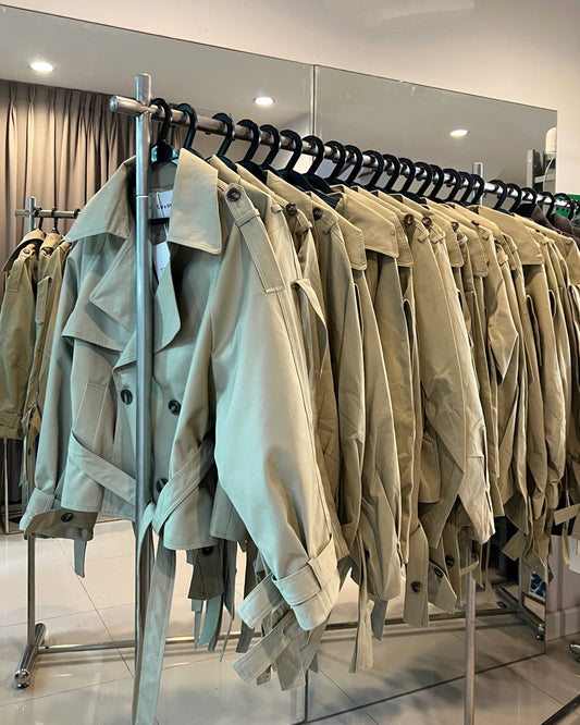 Sold outA95- Short trench coat with skirt